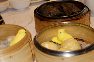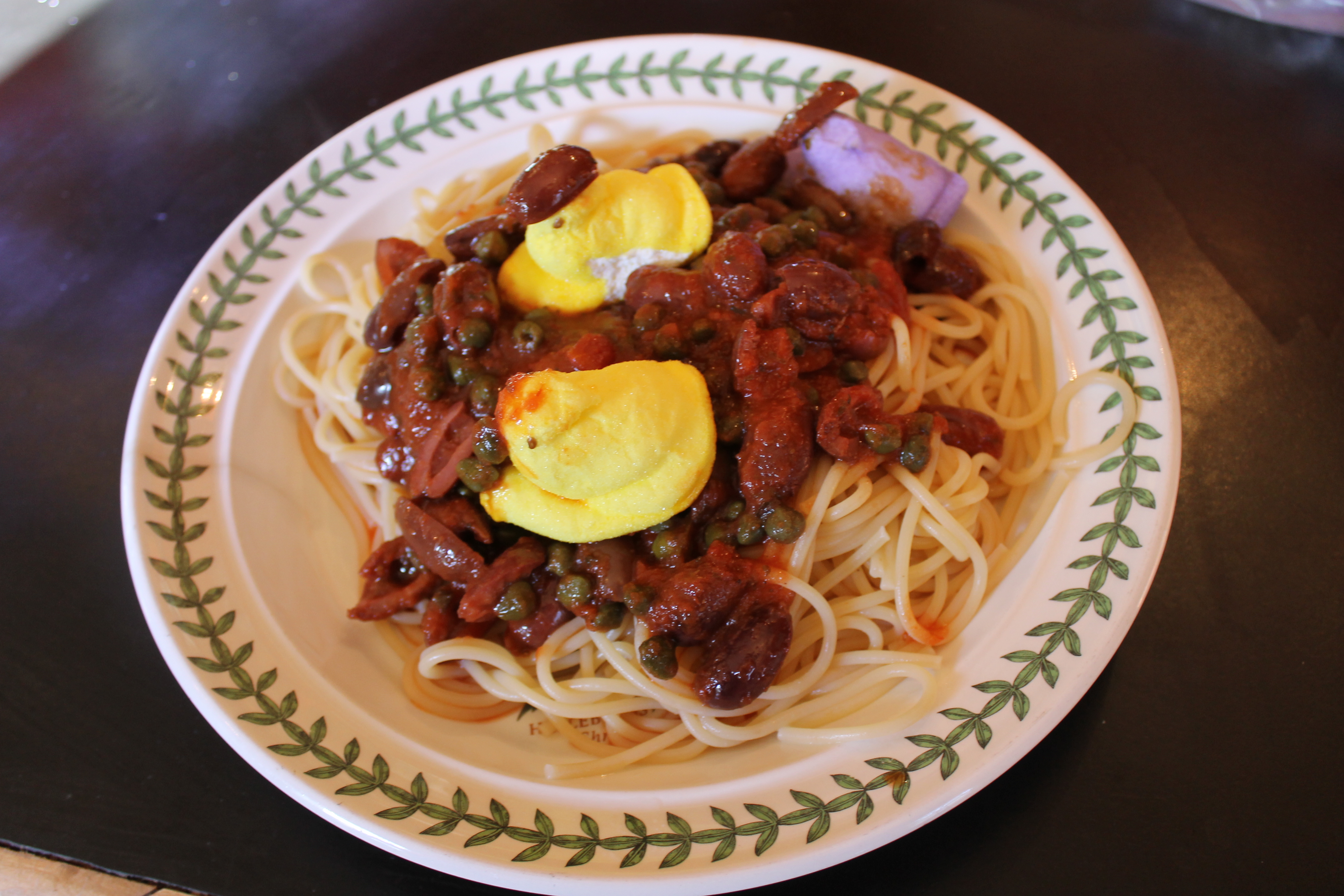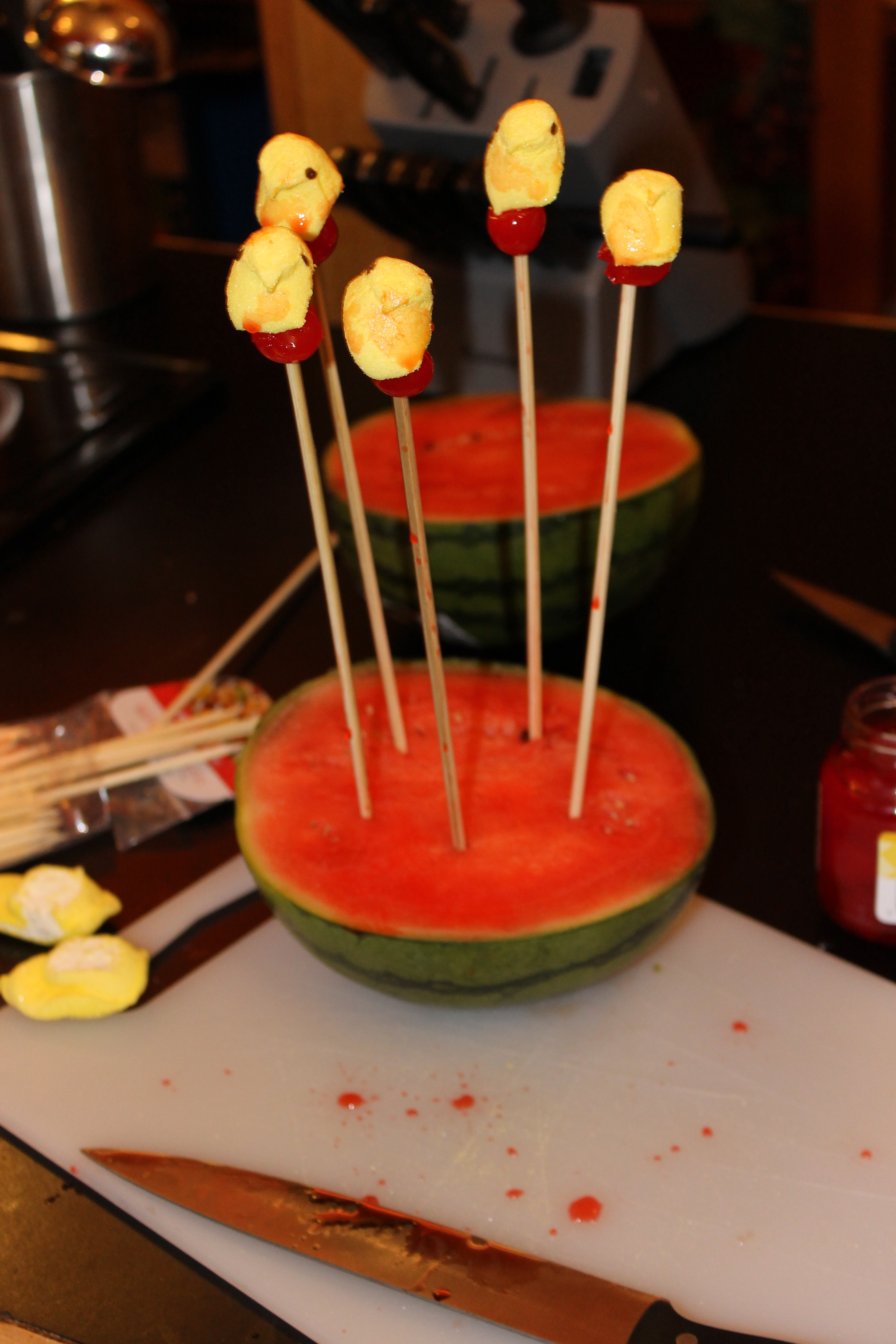 The peeps were so happy to be in this recipe that they got crrraaazy and started popping the cherries on their heads. Silly peeps. They just love wearing hats!